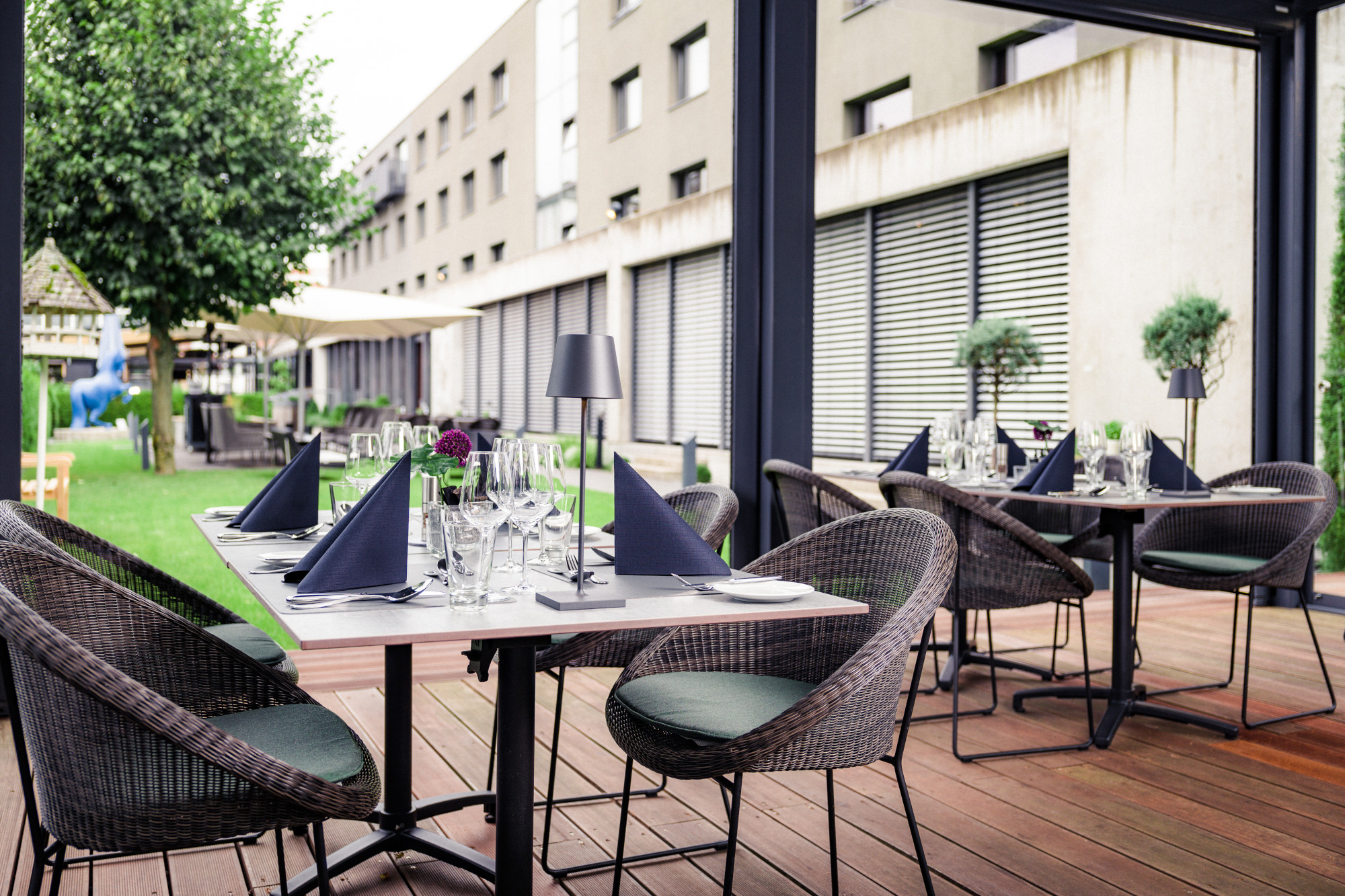 Wir erwarten euch mit leckeren Getränken in unserem Hotelgarten.
