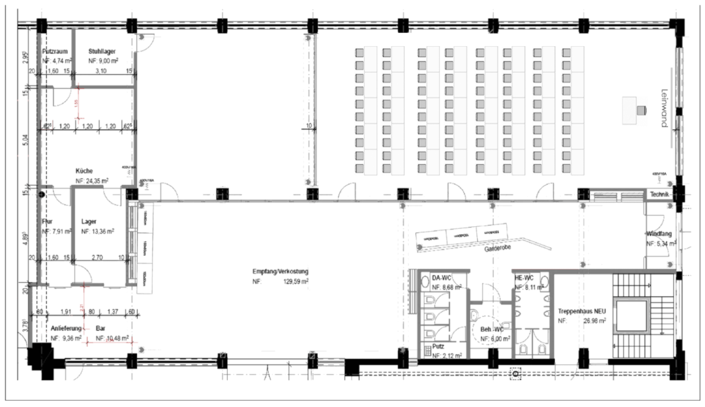 Unser Tagungs- und Eventzentrum KunstWerk befindet sich nur 120m vom Design- & Tagungshotel entfernt. Hier ist auch der 160m²-Tagungsraum zu finden. Die hellen Räume lassen sich, mit modernster Technik und einem besonderen Lichtkonzept, flexibel auf Ihre Veranstaltung abstimmen. Das Foyer mit schöner Terrasse ist 160m² groß und kann für Tagungspausen genutzt werden. L x B x H = 20 x 8 x 3,15 m.